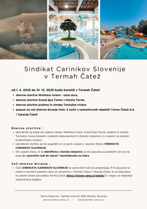 Člani SCS, bodo v terminu od 1. aprila 2025 do 31. decembra 2025 lahko koristili v Termah Čatež: