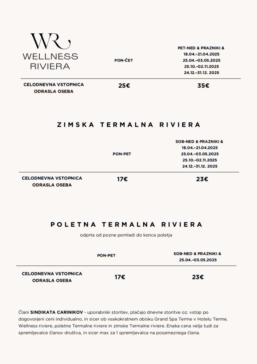 - dnevne storitve poletne in zimske Termalne riviere